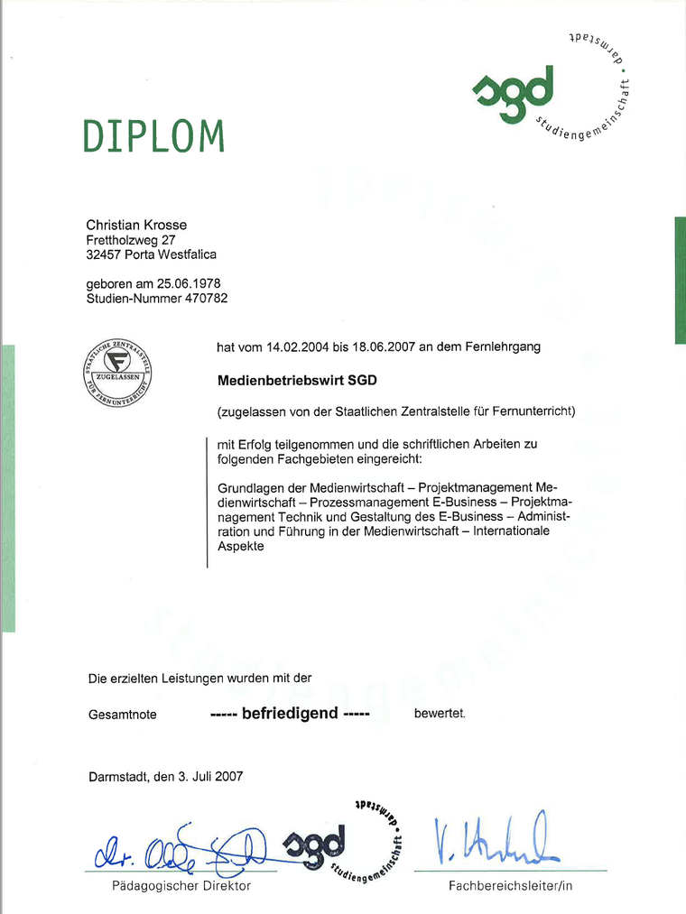 - Dr. Migge: Seminar Basis (2021), Seminar LOC (2021)